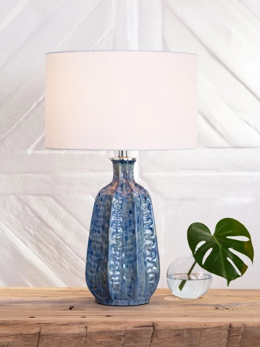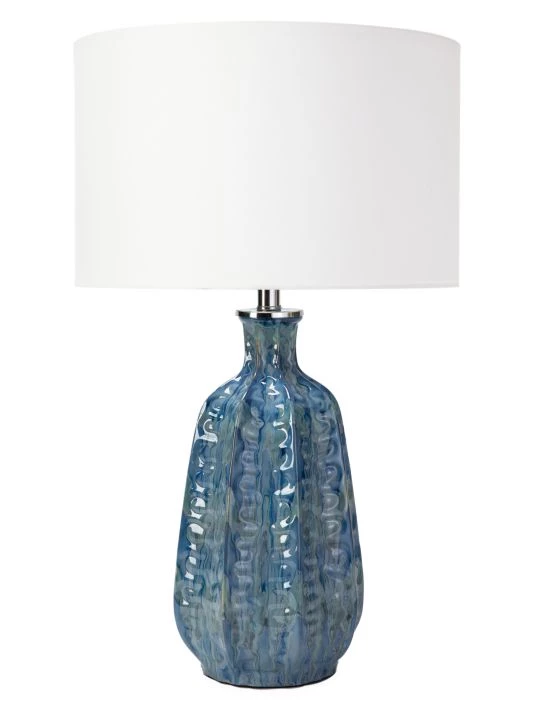 Make a coastal chic statement with this ceramic table lamp. A handcrafted base provides dimension and texture, creating visual interest. Place one in a living room for a bright, light accent.