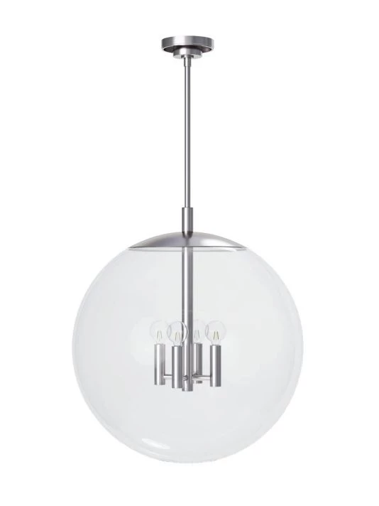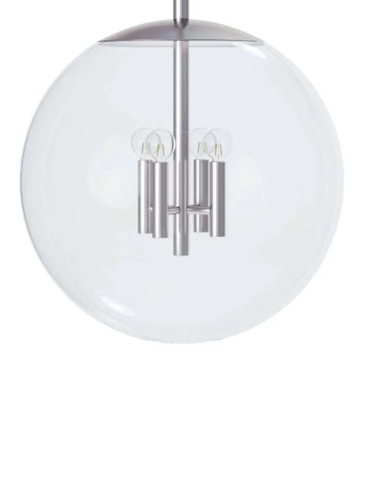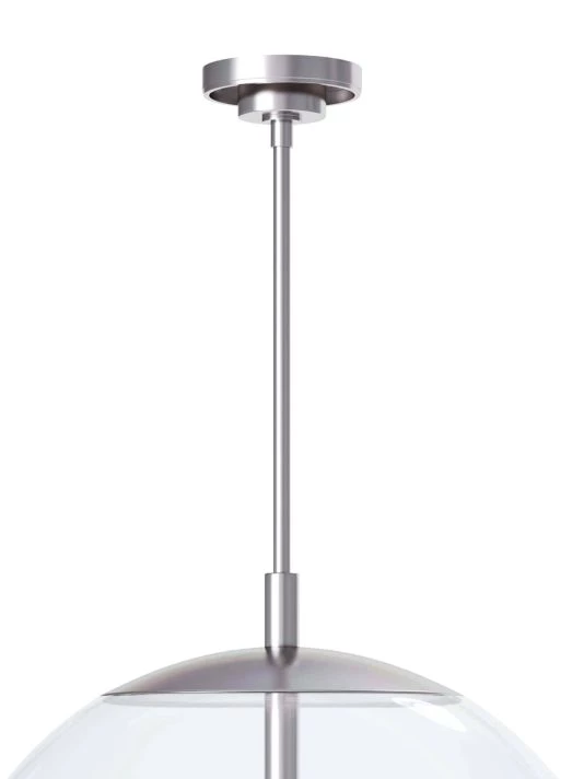 From the Classics Collection. The clear glass shade of the Cafe Pendant acts as a barely-there surround on the metal rod, column and arms. The metal cap adds a refined finishing detail.