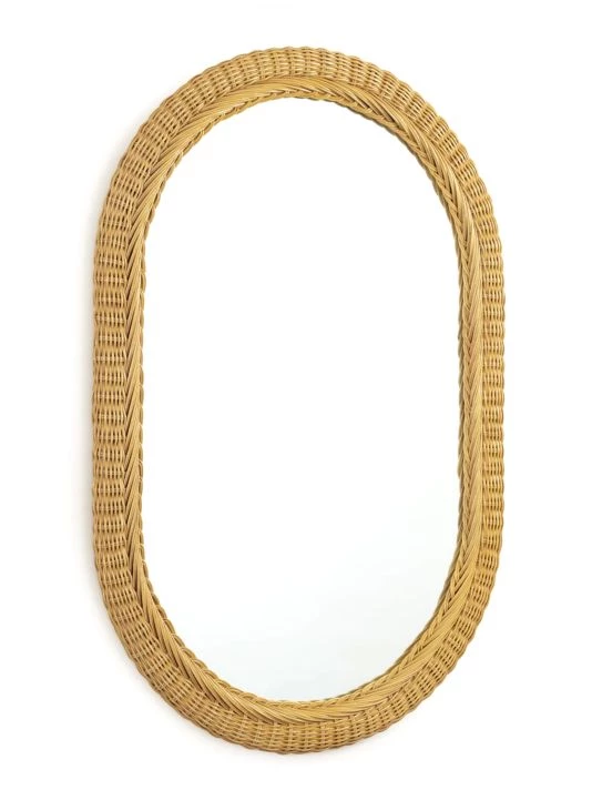 From the Coastal Chic Collection. The Bonjour Mirror features an oblong basket-weave frame for a coastal cottage charm in any room.