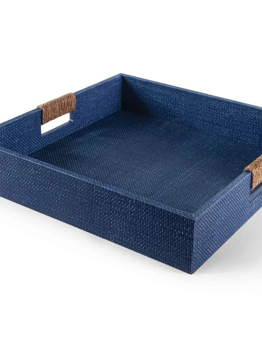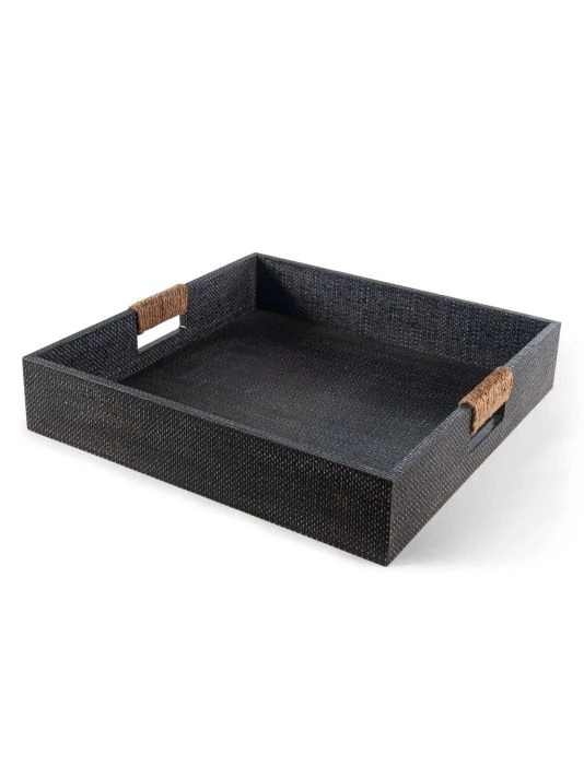 From the Coastal Chic Collection. Perfect as a functional accessory or to display decorative items, the Logia Large Square Tray features rope-wrapped handles accenting the unique resin rattan.