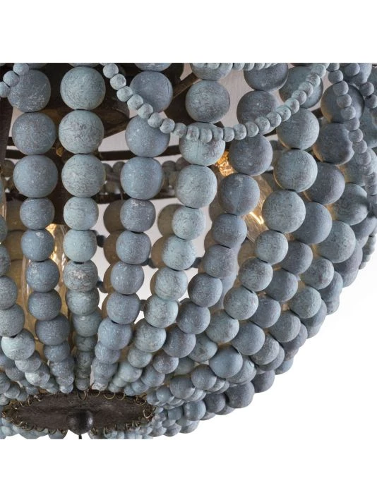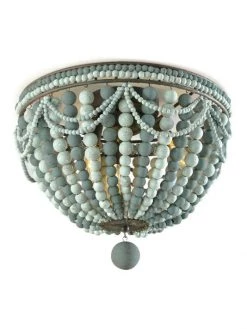 From the Coastal Chic Collection. Classic style meets modern charm with this flush mount. A bevy of draped wooden beads dresses up the steel structure, bringing earthy glamour to any space.