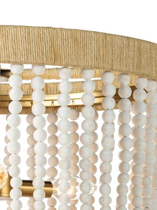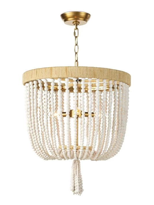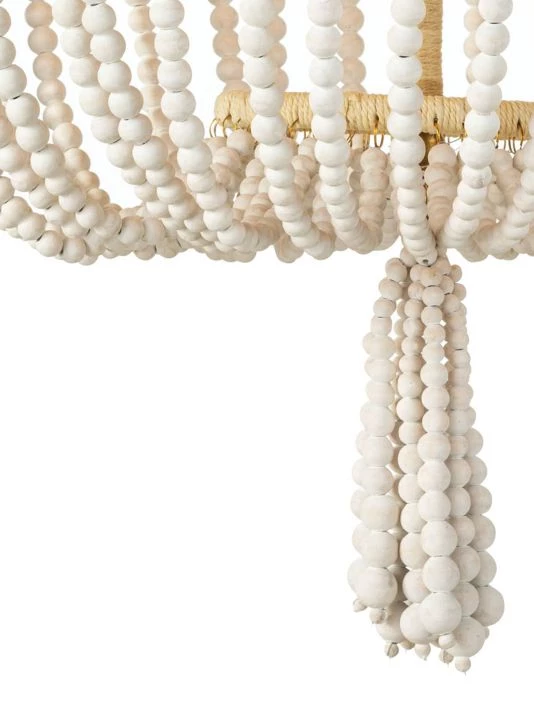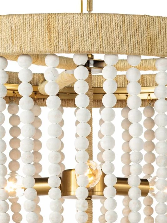 From the Coastal Chic Collection. Combining natural tones and textures, the Milos Chandelier features a rattan-wrapped frame and opaque beads, lending a coastal feel to any space.