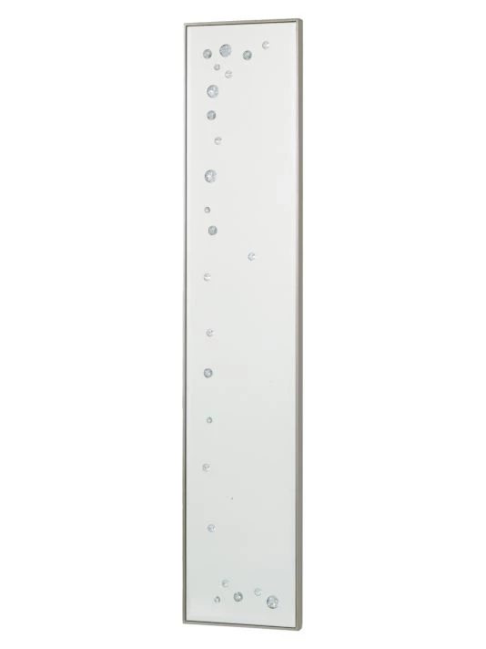 Framed in a wood ambered silver leaf and embellished with intricately cut crystal accents, the Galaxy Mirror reflects the simple elegance and impeccable craftsmanship.
