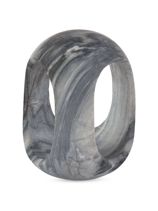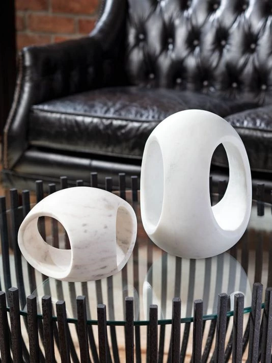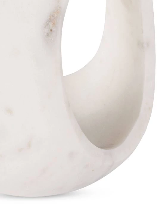From the LA Modern Collection. An elegant and sophisticated accessory, this striking white marble sculpture is hand-carved from a single piece of stone. Its open construction gives the piece an airy feeling. Looks great in a pair with the smaller version.