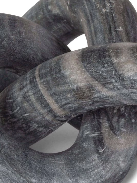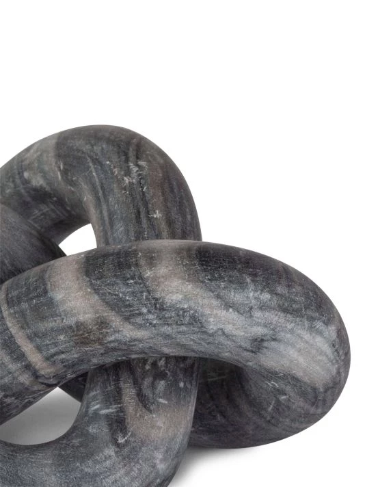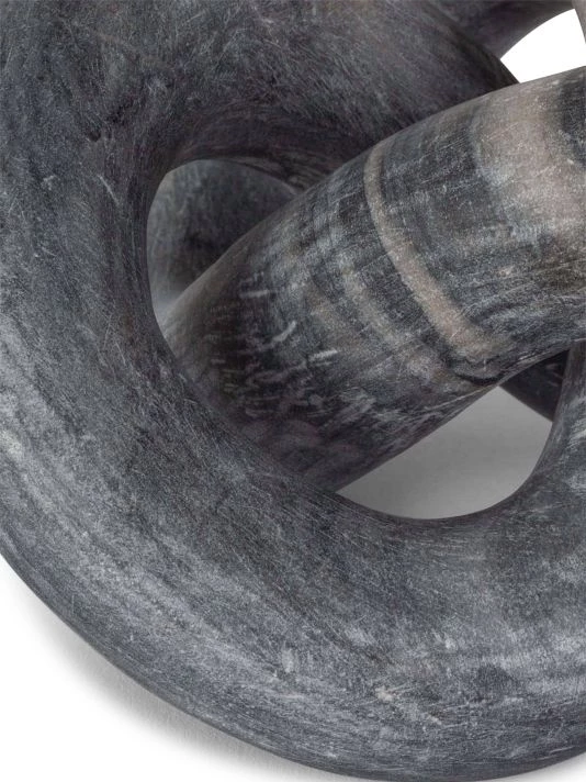 Hand-carved from a single piece of black stone, this abstract sculpture weaves about creating a flowing singular form. Add this modern tabletop accessory to your living room or bedroom.
