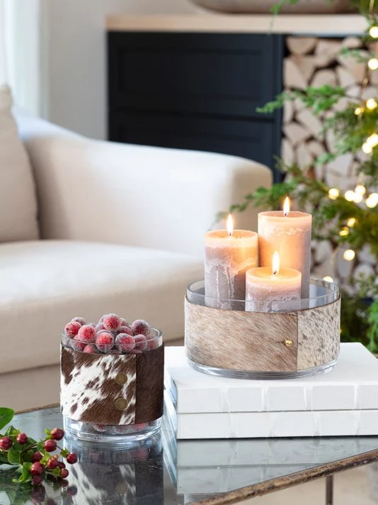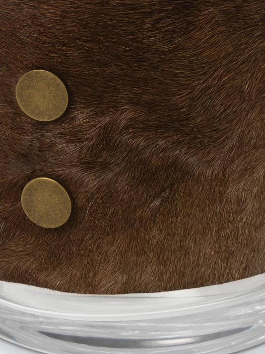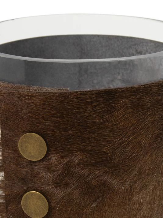 From the LA Modern Collection. The Jackson vase features a glass base and a neutral hair-on-hide palette that compliments any room.