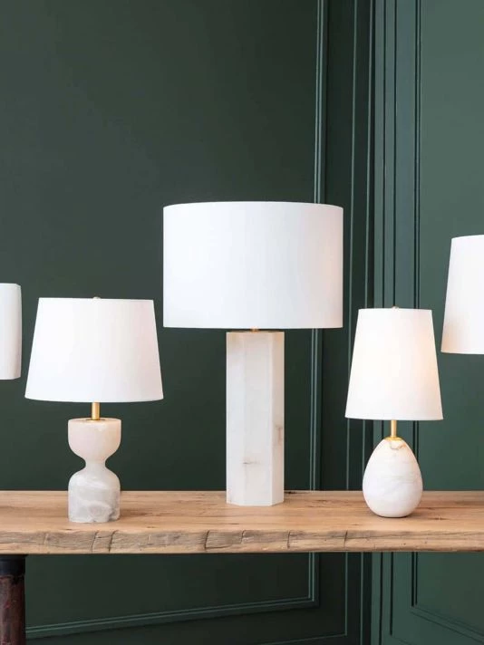 This lamp is shapely yet stately, carved from a solid piece of the stone. Its organic feel brings softness to any modern space.