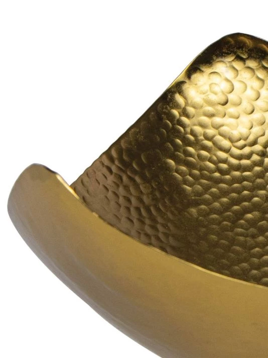 From the LA Modern Collection. The polished golden tone of the Milo Bowl is enhanced with a hand-hammered texture that creates its signature artisan feel. Place alone or with its larger counterpart as a sophisticated key dish, fruit bowl or as a stand-alone sculptural accessory.