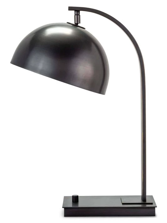 From the LA Modern Collection. The Otto is the quintessential task lamp thats refined silhouette makes it perfect for both modern and traditional spaces. A dramatic metal dome shade produces the perfect amount of illumination for the task at hand, and can be adjusted with its swivel joint. The curved neck mirrors the dome shade and leads down to the simple base with smooth turning on/off knob. The detailing on this lamp is exquisite and will add both style and function to any workspace, bedroom or living area.