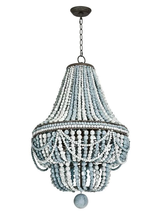 Classic style meets modern charm in this weathered blue bead chandelier that brings earthy glamor to any space.