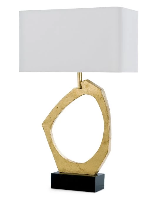 This lamp will add a sculptural artistic look to any room. A gold leaf finish creates a sophisticated contrast to the dark base and rectangular shade.