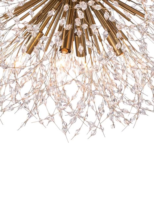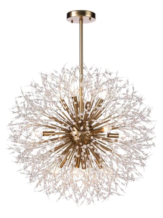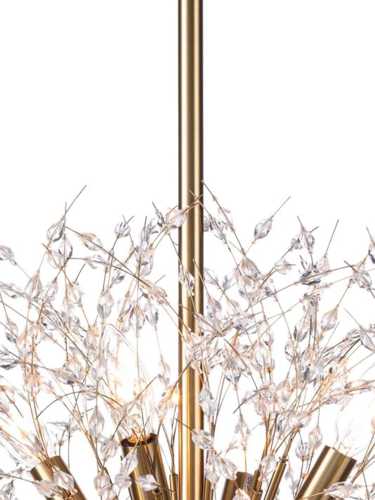 From the Modern Glamour Collection. Just like the fabric of its namesake, the chiffon chandelier has a light and airy aesthetic. Bring a sense of natural glamor to your space with the chiffon’s delicate beading, natural brass detailing and signature light play.