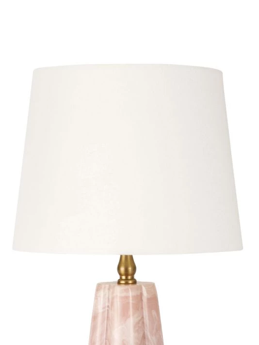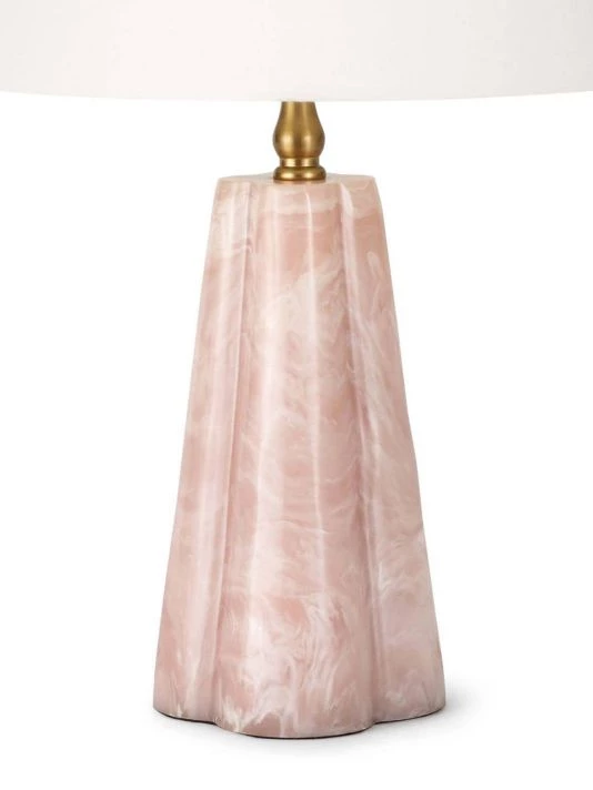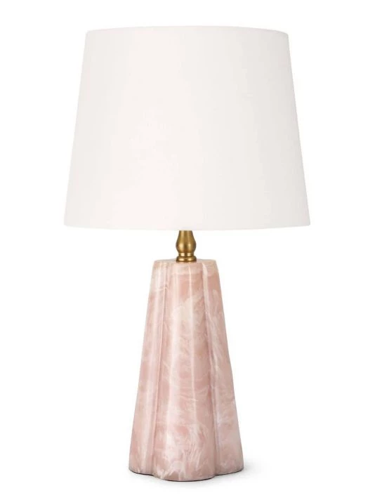 From the Modern Glamour Collection. The Joelle Mini Lamp features a classic silhouette and a sturdy base designed to resemble rose quartz.