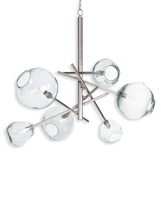 Molten glass has an inherent beauty because of its artisan crafted, organic form. The natural glass shade variation creates dramatic light play and contrast, especially when combined with the modern appeal of its polished nickel, linear pipes. A true sculptural beauty, the Molten Chandelier is stunning on its own or in a pair, above a dining table, kitchen island or anywhere else needing a little modern lighting drama.