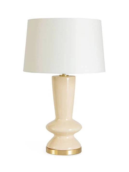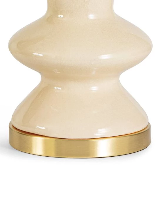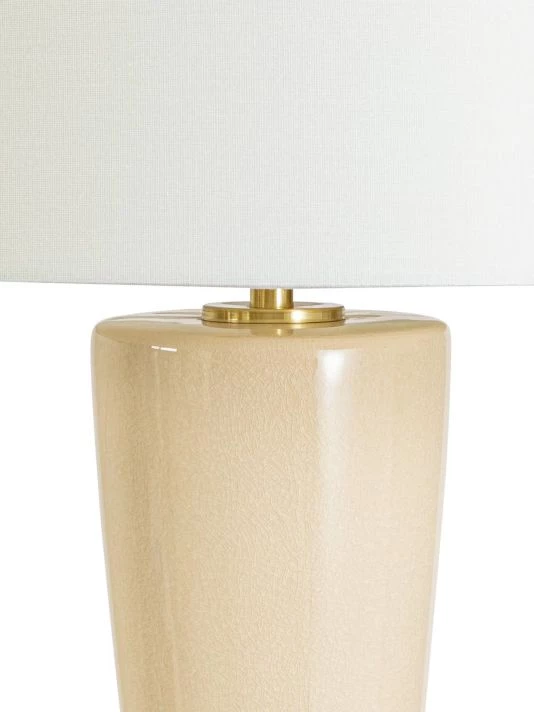 New South Collection. The Pennie Ceramic Table Lamp features a unique mid-century silhouette with a contemporary flair and features a crackle glaze with natural brass finishings.