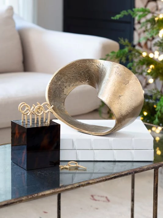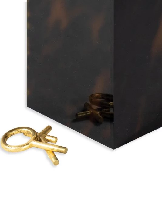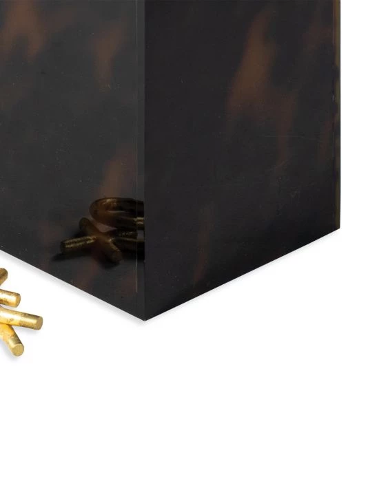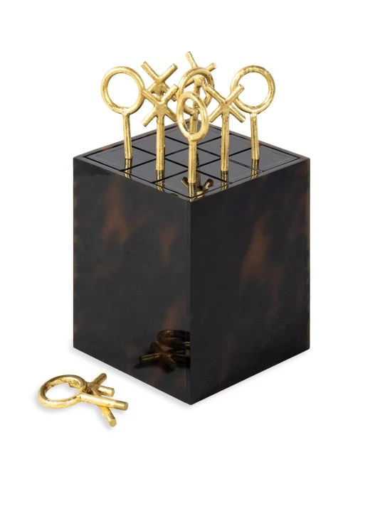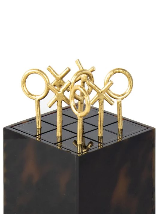 From the New South Collection. This stylish and functional tic-tac-toe game features a faux tortoiseshell block and gold leaf game pieces.
